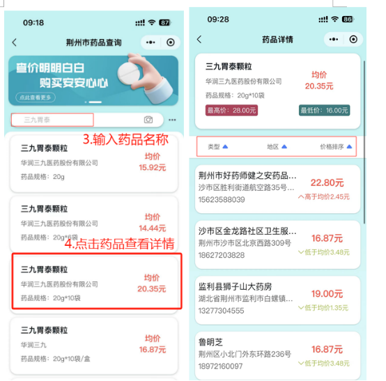 “荆州市零售药品价格查询”小程序是全省首家上线的地市级药品比价系统。目前,全市已有1500余家医药机构上线该系统,共录入药品信息40余万条,市民可在同一页面找到在售药品的合适品规、合适的厂家,对比数家药店的价格等信息。