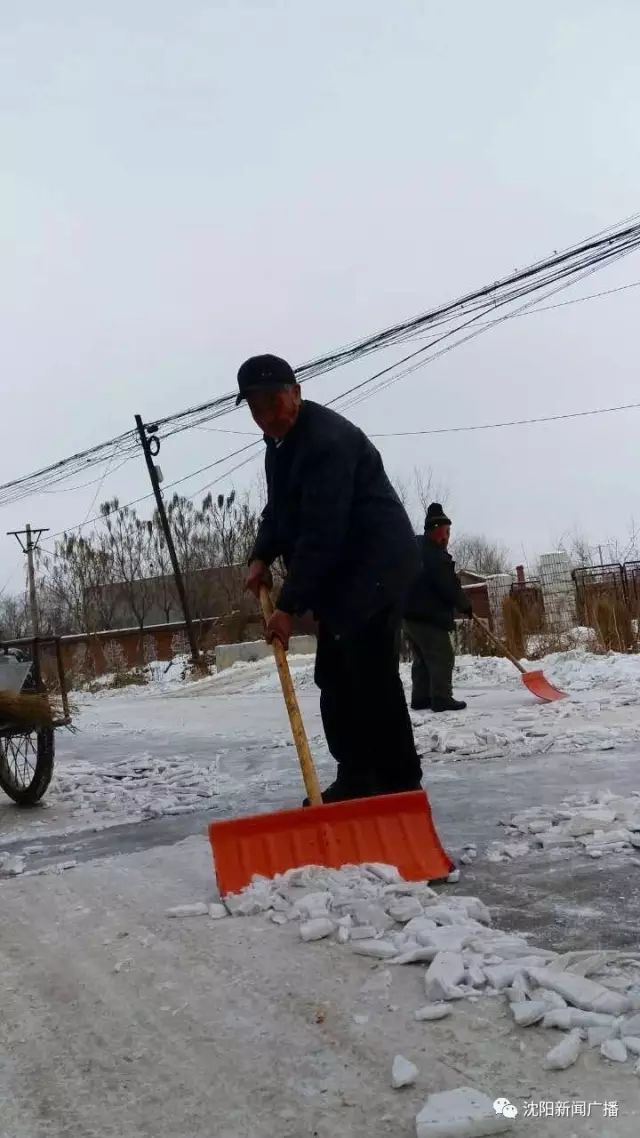 17年来,每当下雪,他就会准时出现在村口的坡路除雪,无一天例外。