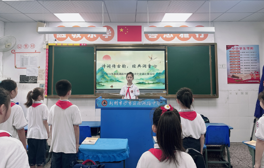 江汉风报道:为激发南湖学子学习中华优秀古诗文的兴趣,6月20日下午,南湖路中学一至六年级开展经典诗文背诵考核活动。