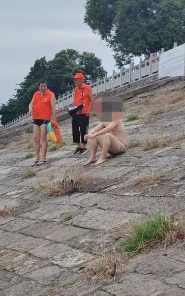 救援队队员说,这是6月24日下午5点左右发生的事情,当时溺水男子被救起来后,坐了一会无大碍便离开现场。