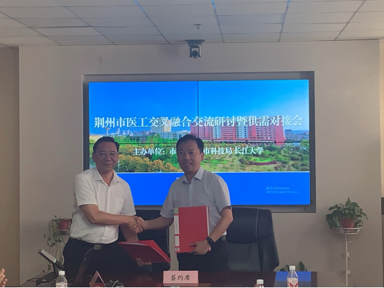会上,长江大学与湖北东信药业有限公司;荆州市中心医院与湖北一半天制药有限公司;荆州一医与洪湖泰宁医疗器械有限公司分别进行了供需对接签约。