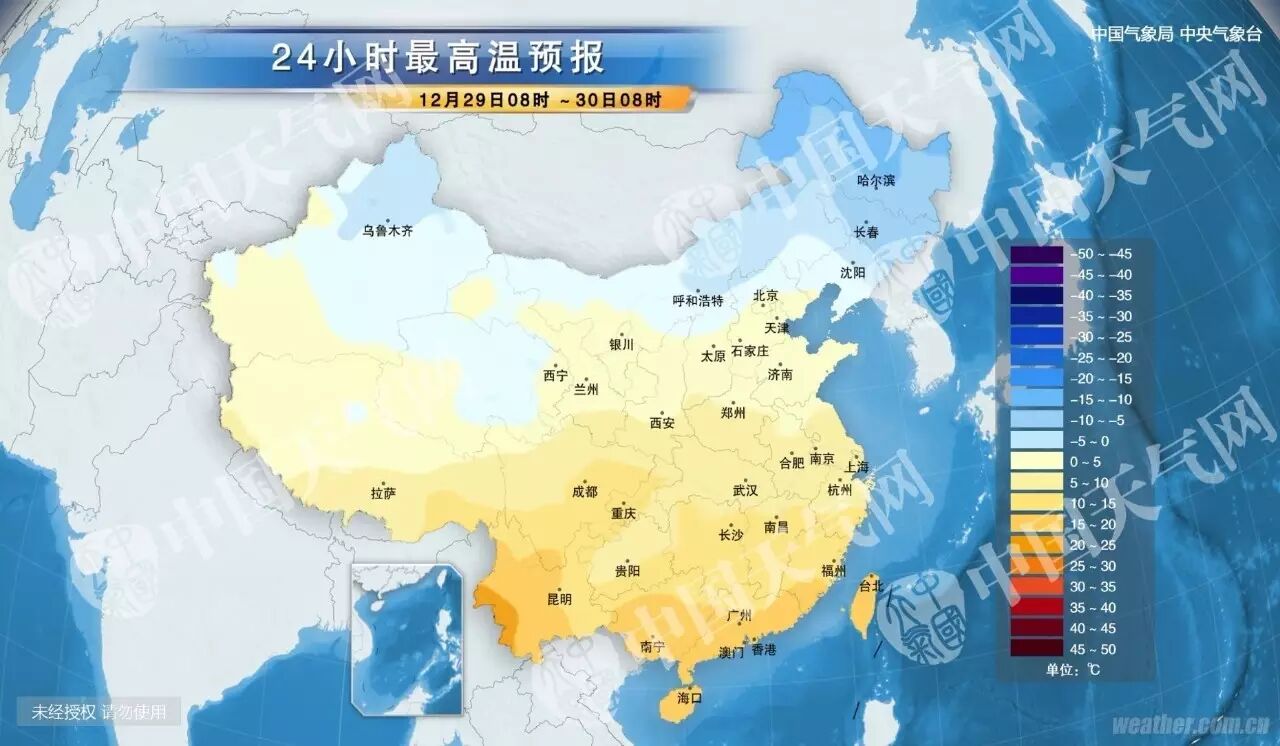 回温过后,元旦假期我国气温将重回偏高水平。中央气象台预计,明日至2017年1月6日,全国大部地区气温将较常年同期偏高1~3℃,其中西北地区东部、内蒙古中西部的部分地区偏高4~5℃。
