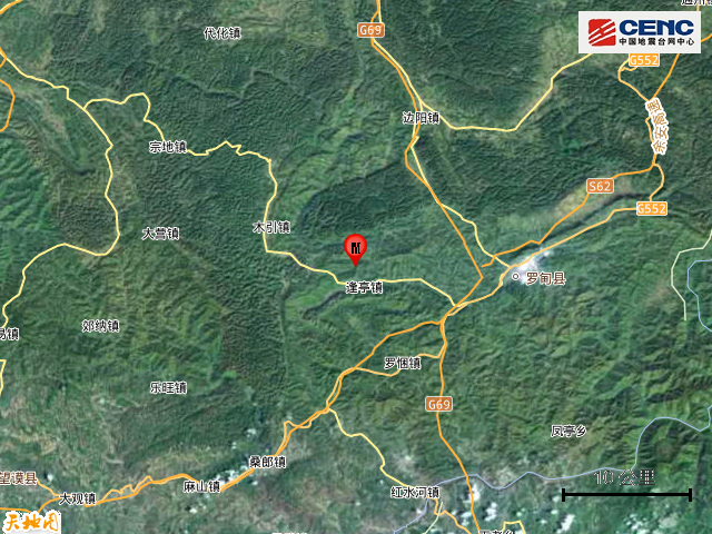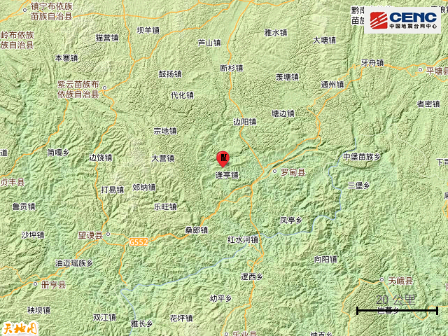 附近村镇:本次地震周边5公里内的村庄有大土、下寨、云盘、纳闹村、罗江村、罗落寨、里绕、布忙村、梁子上、兴龙村,20公里内的乡镇有逢亭镇、木引镇、板庚乡、罗悃镇。