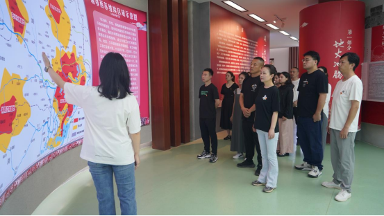 活动中,大家在讲解员带领下依次进行参观,一幅幅泛黄的照片、一件件珍贵的实物、一幕幕感人的场景,让大家深入了解湘鄂西苏区革命史。同时,老党员还在现场给青年党员介绍了展板上历史事件发生地如今的位置,并交流观展心得体会,为此次红色主题教育营造了浓厚氛围。