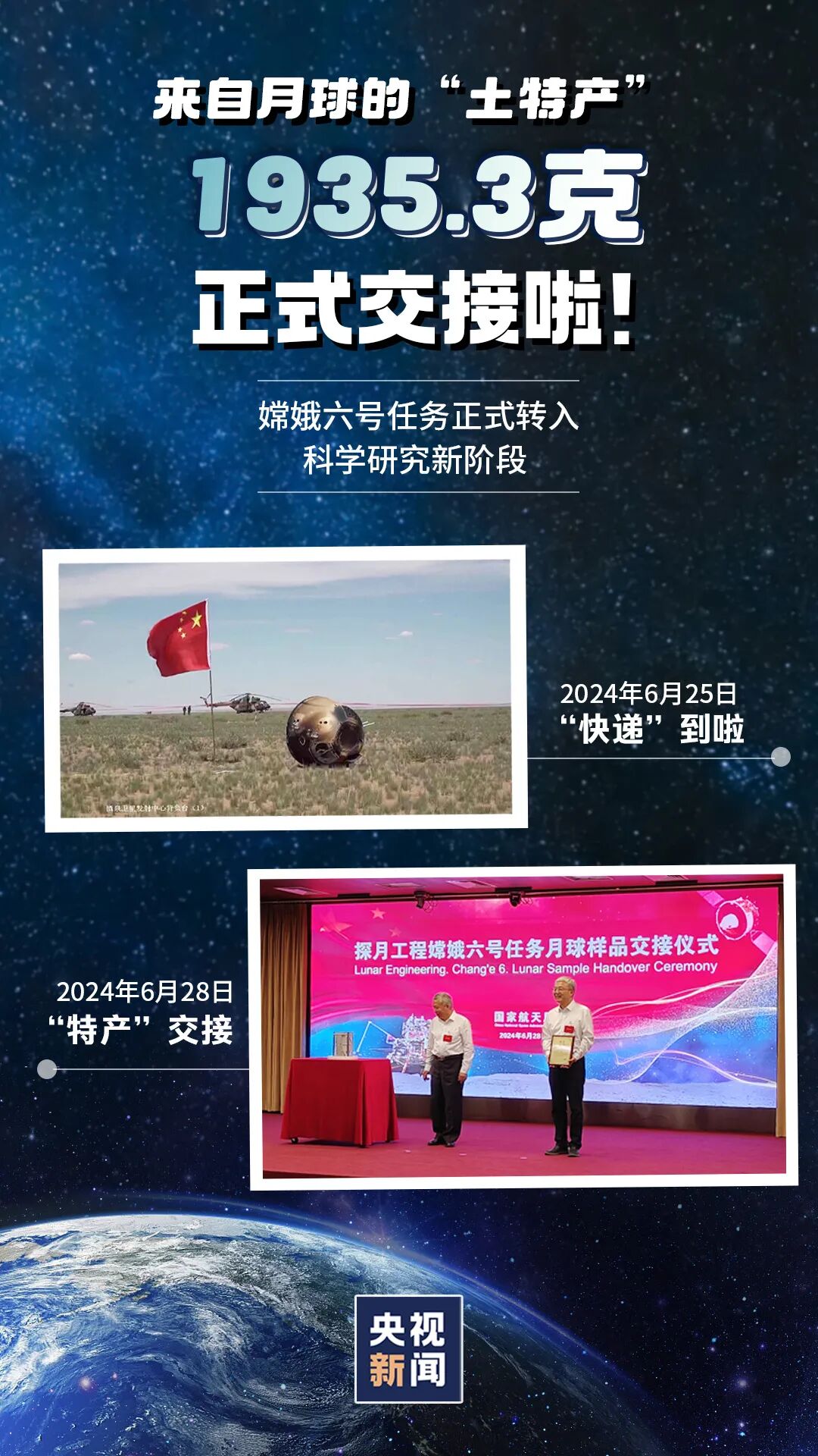 经初步测量,嫦娥六号任务采集月球样品1935.3克,在样品安全运输至月球样品实验室后,地面应用系统的科研人员将按计划开展月球样品的存储和处理,启动科研工作。这标志着嫦娥六号任务由工程实施阶段正式转入科学研究新阶段。