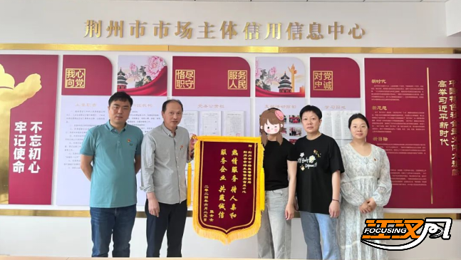 江汉风报道:6月27日,荆州市某仪器有限公司将一面写着“热情服务待人亲和 服务企业共筑诚信”的锦旗送至荆州市市场主体信用信息中心,感谢该中心为企业高效办理了信用修复,重塑了企业诚信。
