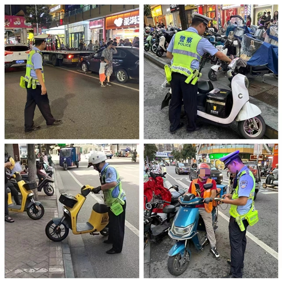 荆州交警一大队在万达商圈加派警力,通过“步巡”与“车巡”相结合的方式,每日“提早上岗,延迟撤岗”,随时根据周边情况实时调整执勤岗位、灵活部署警力,以万达商圈违法停车为重点对违规停放机动车、非机动车进行现场清理,并开展沿街门店商户规范停车宣传,确保道路畅通有序。