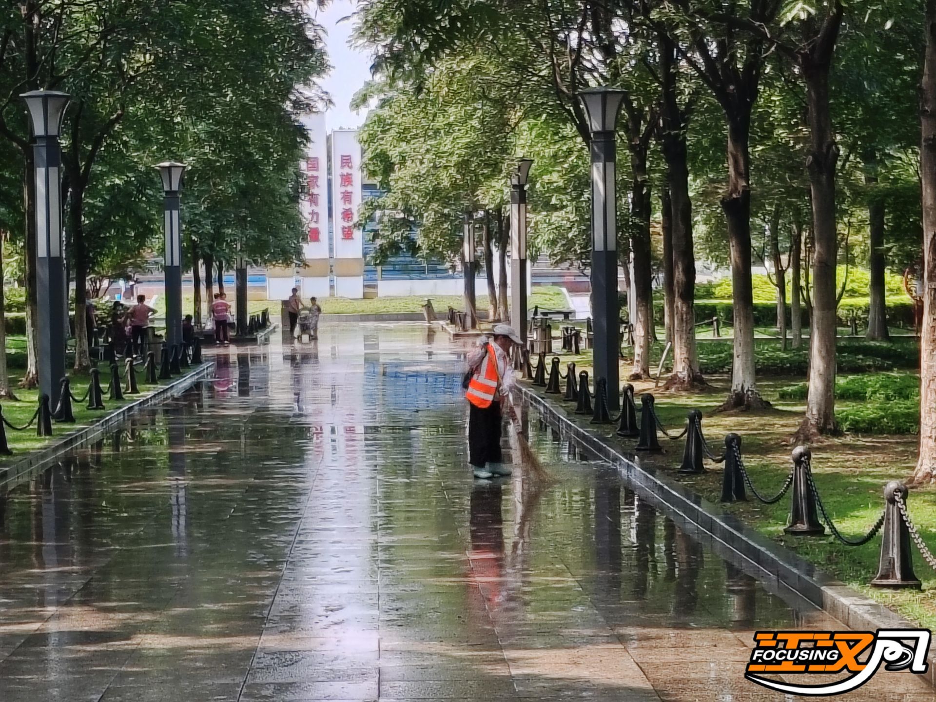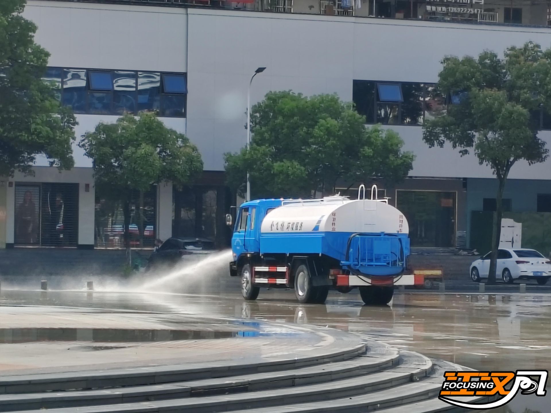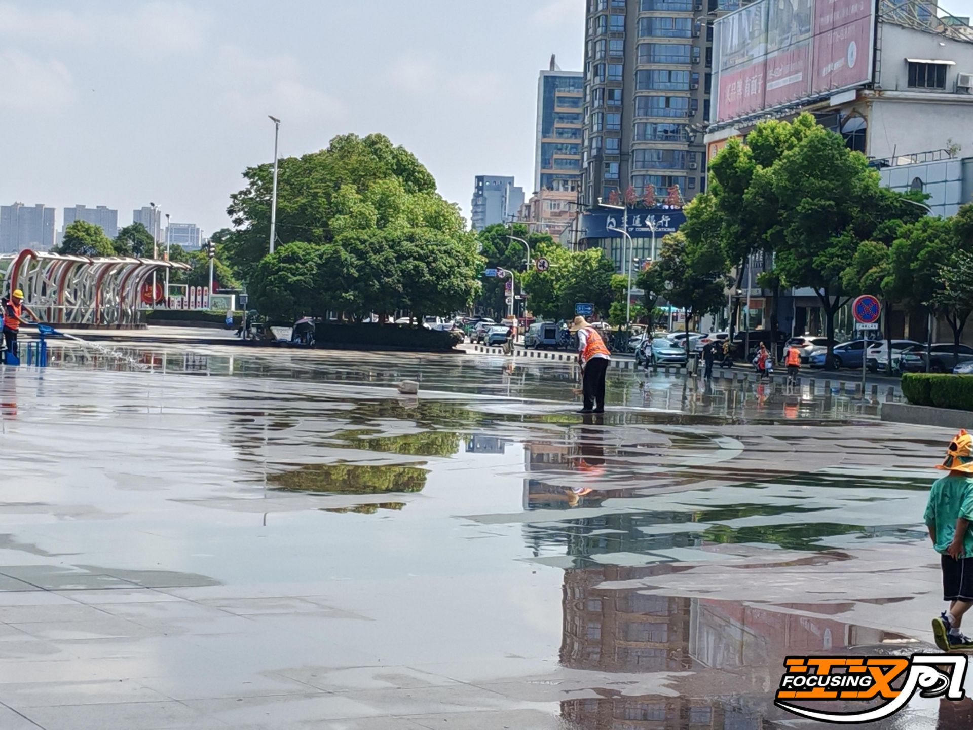 上午十点,环卫工人王冬凤和同事们在便河广场上开展冲洗清淤工作。这项工作采取“机械+人工”结合的方式进行,环卫工人先使用铁锹将沿线淤泥铲起运走,随后冲洗车辆将路面冲洗干净,再由环卫工人进行收尾和查漏补缺。