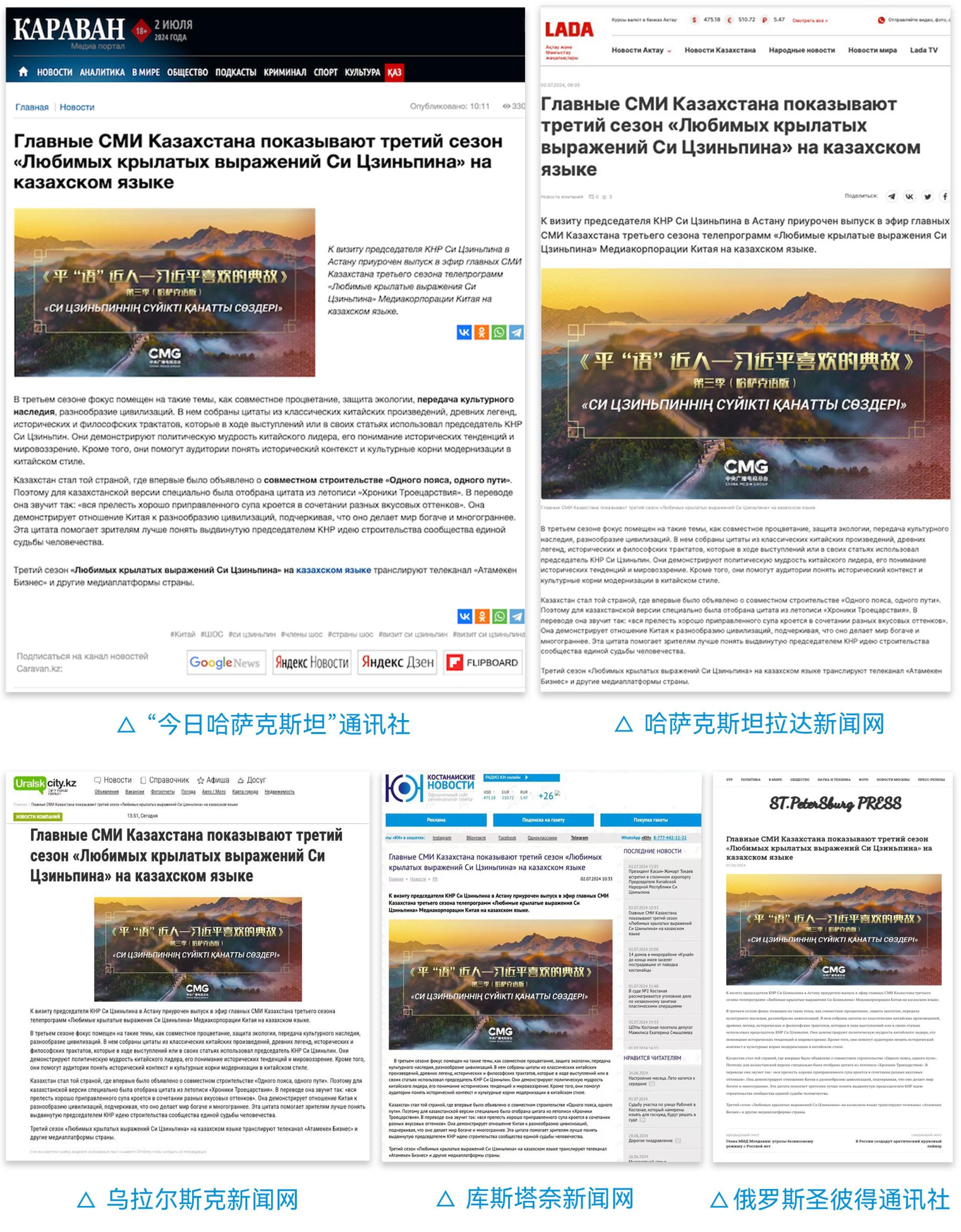 7月2日,哈萨克斯坦政府机关报、最有影响力的报纸《哈萨克斯坦真理报》(俄语版),《主权哈萨克斯坦报》均在头版刊发节目在哈落地播出的预告消息。文章指出,节目展现了中华民族自古以来开放包容、兼收并蓄的文化胸怀,阐释中国历来主张尊重世界文明多样性,并致力于推动不同文明间的和谐共生,为包括哈萨克斯坦在内的共建“一带一路”国家受众提供了了解习近平主席提出的构建人类命运共同体理念的思想路径。