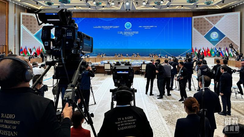 △当天下午,“上海合作组织+”阿斯塔纳峰会在这里举行,这是会议开始前。(总台央视记者程铖拍摄)