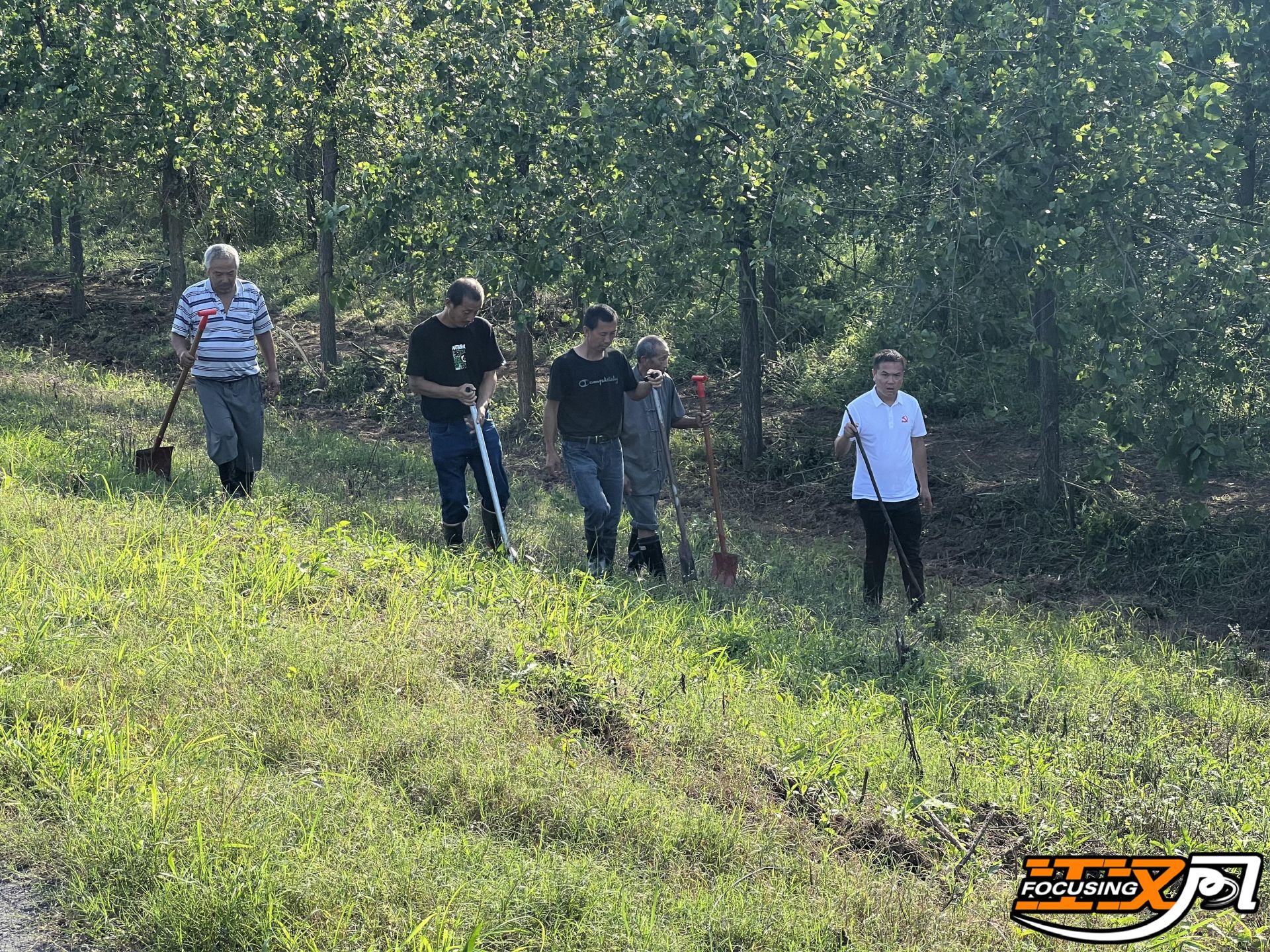 午间12点,烈日、狂风。73岁的王新国手持铁锹,带着巡查队伍行进在监利三洲围堤。
