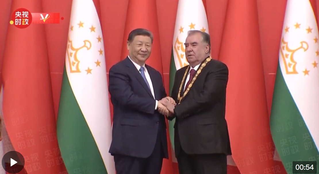 独家视频丨习近平向塔吉克斯坦总统拉赫蒙颁授“友谊勋章” 2024-07-05 22:40 央视新闻客户端 0 当地时间7月5日下午,国家主席习近平在杜尚别总统府举行隆重授勋仪式,向塔吉克斯坦总统拉赫蒙颁授“友谊勋章”。这是中国首次在境外颁授“友谊勋章”,是为表达中国人民对拉赫蒙总统和塔吉克斯坦人民友好感情作出的特殊安排。 3名中方仪仗兵高举中塔两国国旗,护送中华人民共和国“友谊勋章”入场。习近平为拉赫蒙佩挂勋章。两国元首亲切握手。全场响起热烈的掌声。