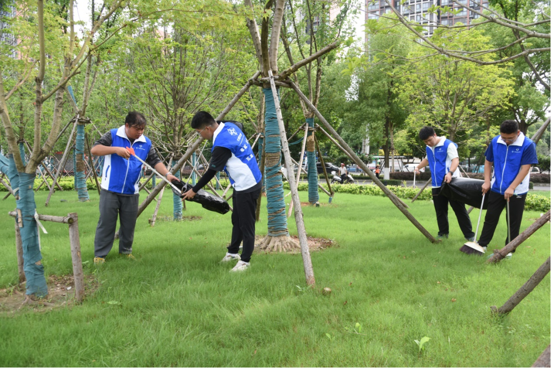 当天,天气晴好。中交一航局荆州新客厅房建项目部的蓝马甲志愿者携手项目公司以及业主单位——城发鑫盛公司的红马甲志愿者,统一志愿服,手持铁锹、扫帚、垃圾袋等工具,斗志昂扬地来到由中交一航局承建的荆州新城城市活力公园,开启了一场别开生面的雨后环境清理行动。