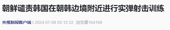 朝鲜谴责韩国在朝韩边境附近进行实弹射击训练