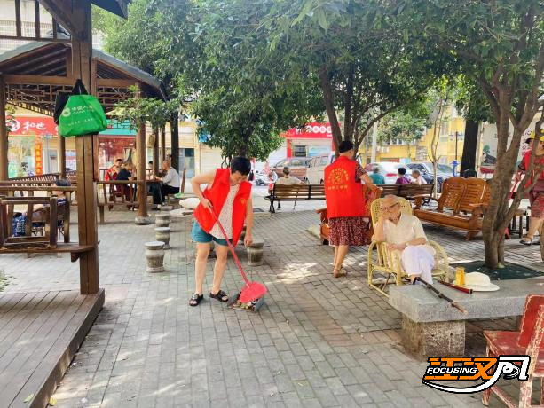 活动中,志愿者们穿着红色马甲,带着扫帚、垃圾钳、簸箕等清扫工具,对工农村社区的小广场、休息的亭子、卫生死角等区域的生活垃圾和白色污染物、烟头进行了清理。虽然天气很炎热,但是大家不怕脏、不怕累,呈现了一片热火朝天的劳动景象。
