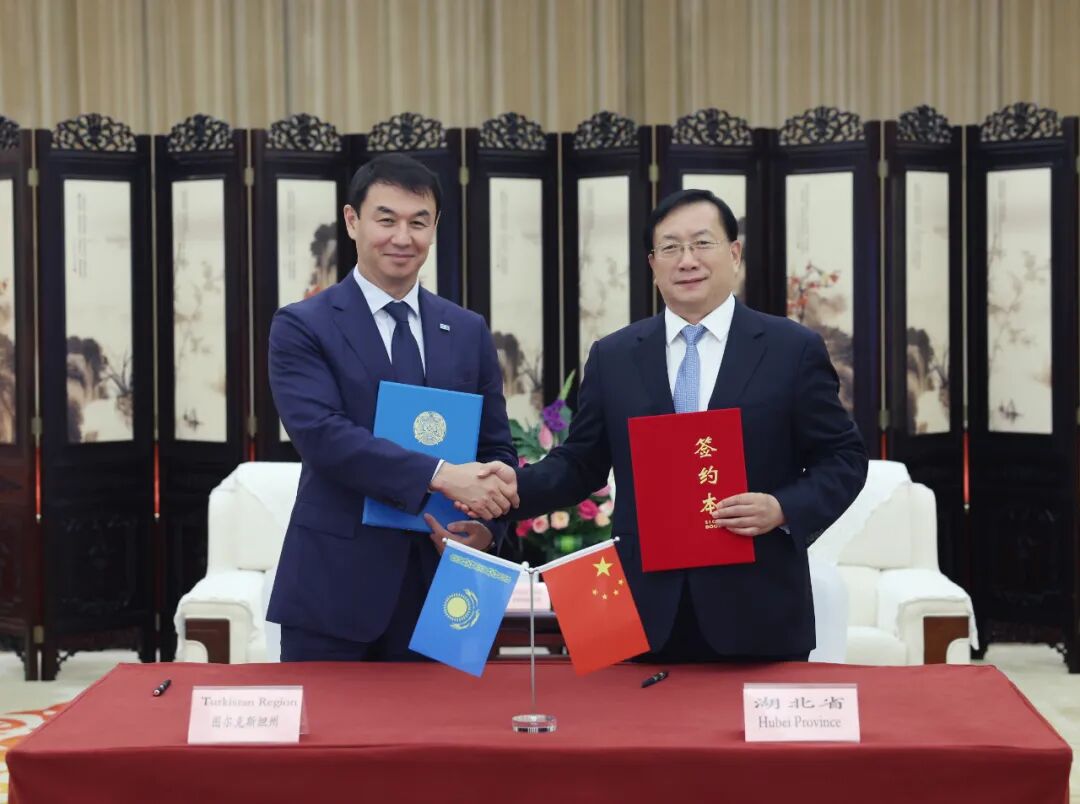 王忠林向萨特巴尔德一行来访表示欢迎。他说,近日,习近平主席对哈萨克斯坦进行国事访问,与托卡耶夫总统亲切交流,就开辟中哈关系新的“黄金30年”作出新规划、达成新共识。州长先生此次到访湖北,是积极落实两国元首共识的务实行动,必将有力促进省州交流合作。湖北地处中国中部、长江中游,是经济大省、科教大省、生态大省、农业大省,交通区位、科技创新、产业发展等优势突出,经济运行持续向好。近年来,湖北省坚定贯彻习近平外交思想,在中哈永久全面战略伙伴关系引领下,持续深化与哈萨克斯坦合作,经贸、人文等领域交流成效显著。我们将认真落实中哈两国元首会晤达成的重要共识,以此次签署建立友好关系意向书为契机,进一步深化省州友好往来,在经贸、农业、重大基础设施建设等领域加强合作,丰富科教、文旅等人文交流交往,共享发展机遇、共创美好未来,为构建更加富有内涵和活力的中哈命运共同体、持续高质量共建“一带一路”作出新的更大贡献。