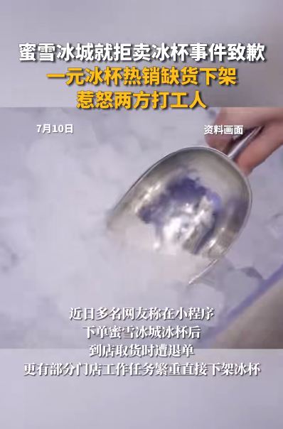 对于个别门店在操作过程中出现的服务不佳等问题,我们向大家表示歉意。我们将加强服务培训,持续提升“雪王冰杯”的产品体验,向大家提供更好的产品与服务。如您遇到涉及“雪王冰杯”的消费体验问题,也欢迎您通过客服热线向我们反馈,我们将派专人及时跟进处理。