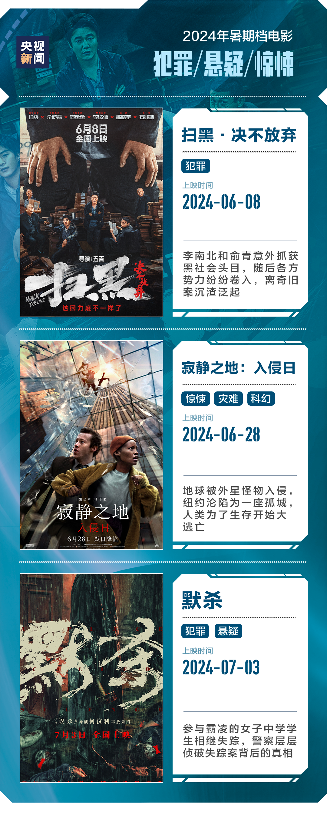 据网络平台数据,截至7月12日14时55分,2024年暑期档档期(6月1日—8月31日)总票房突破35亿元,《默杀》《云边有个小卖部》《头脑特工队2》分列档期票房榜前三位。今年暑期档电影种类丰盛、佳片云集,从国产佳作到进口大片、从爆笑喜剧到刑侦悬疑、从动画国漫到文艺新作,各具特色的新片大片纷纷选择在这个火热的暑期档与观众见面。下面有一份暑期档片单,看看你喜欢哪几部,赶紧约上小伙伴一起去看吧~