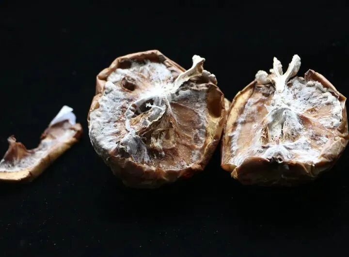 “初步推测是裂褶菌的孢子掉在苹果上,而苹果又刚好有伤口,孢子先侵染苹果果柄,随后向下逐渐扩散到果核,当温度湿度都适合裂褶菌生长时,子实体就可以从苹果顶部长出来。” 许博士说,一般情况下,裂褶菌都是通过分解附着物上的木质素获得营养,像苹果这样的生长条件,往往很难满足其生长需求。