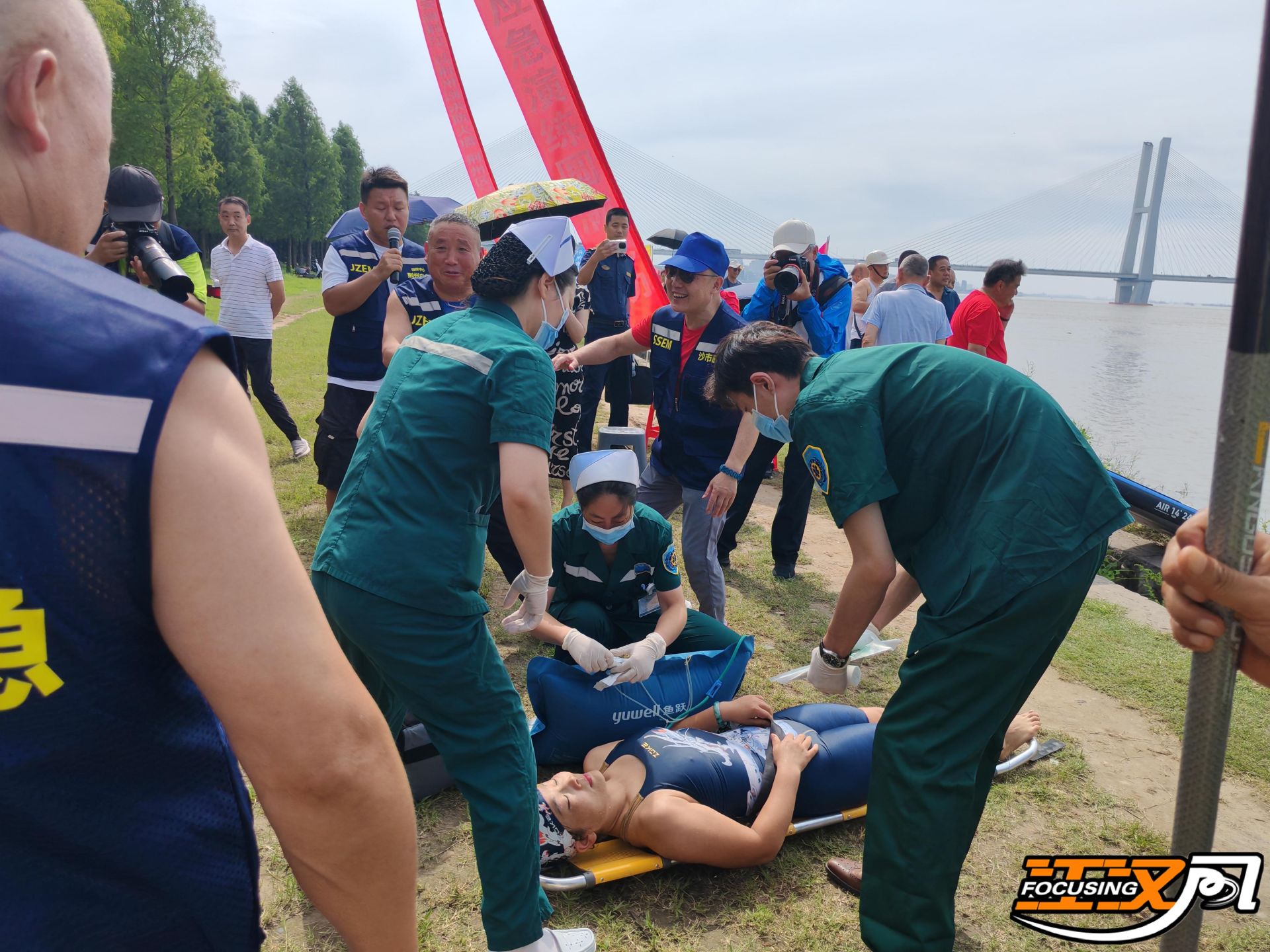 演练现场,两名女性游客在游泳中突发意外溺水,陆地救援指挥部启动应急救援预案,指挥水上救援分队迅速靠近溺水游客实施救援。这时,游客已经体力不支处于昏迷状态,救援人员靠近游客后将她们抱上救援船。游客被送上岸后,医疗救援队立刻对其开展全身检查并进行紧急治疗,将生理指标没有趋于正常的游客送往医院。现场空中搜索分队继续开展搜索溺水人员工作。