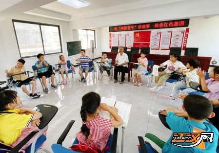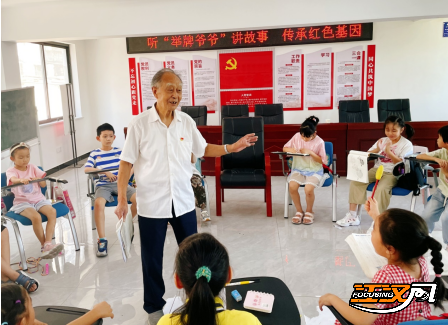 老党员、“举牌爷爷”汪长荣,虽已年逾古稀,但精神矍铄。当天上午,他身着朴素,胸前佩戴着熠熠生辉的党徽,走进托管班教室,在孩子们期待的目光中,汪爷爷开始了他的讲述。