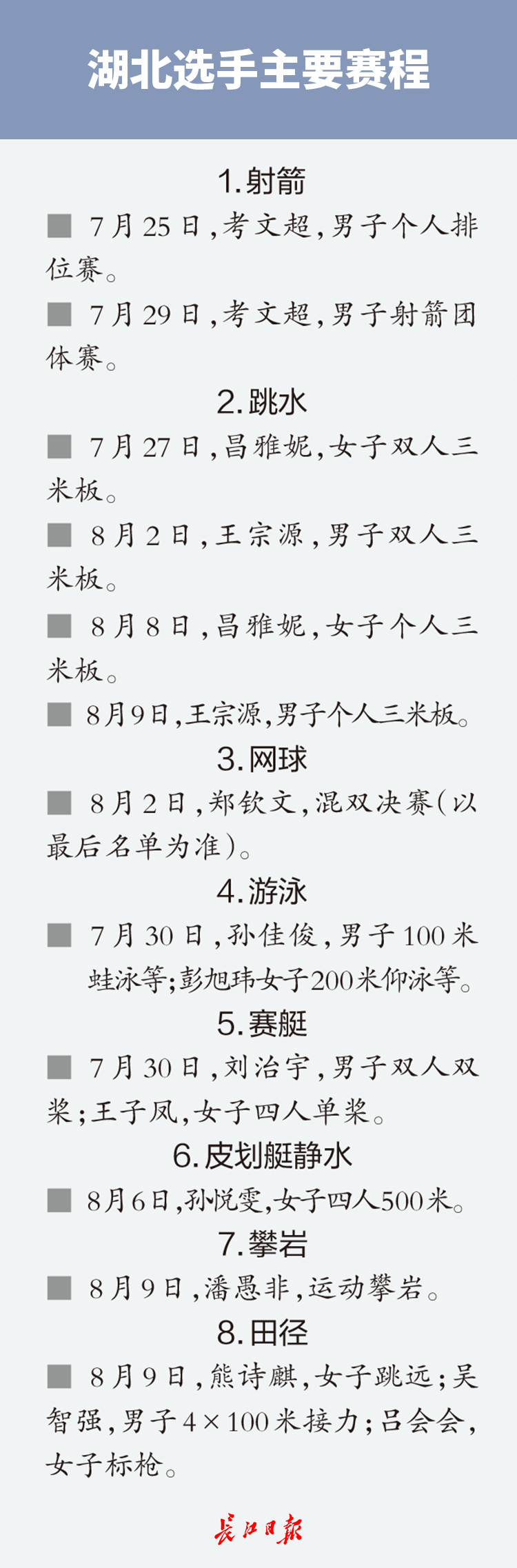 湖北13将奥运赛程