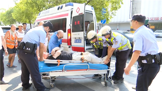 不到两分钟,刘泽正和同事驾驶警用摩托车赶到了事故现场,只见一辆白色小车停在路旁,一名老人躺在地上,救护车已在现场,刘泽正和同事立即帮忙将伤者抬上救护车。