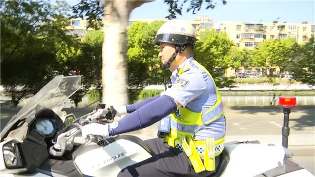 荆州市公安局交管局二大队快骑队民警 刘泽正:天气热了,除了交通事故,还有就是求助电话,像昨天我处理了一起……提醒老人出门带好联系方式……