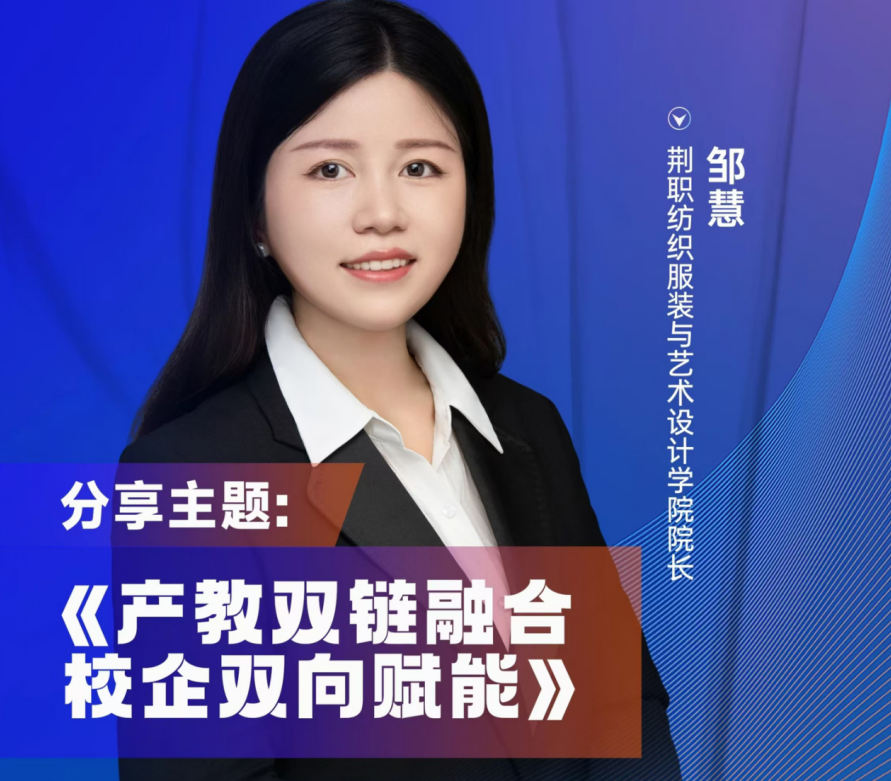 江汉风报道:“职业教育在助力企业人才培养方面展现出了显著的优势,这些优势不仅体现在技能培养上,还涉及到校企合作、产教融合等多个层面。”荆职纺织服装与艺术设计学院院长邹慧,以《产教双链融合 校企双向赋能》为题进行了分享。