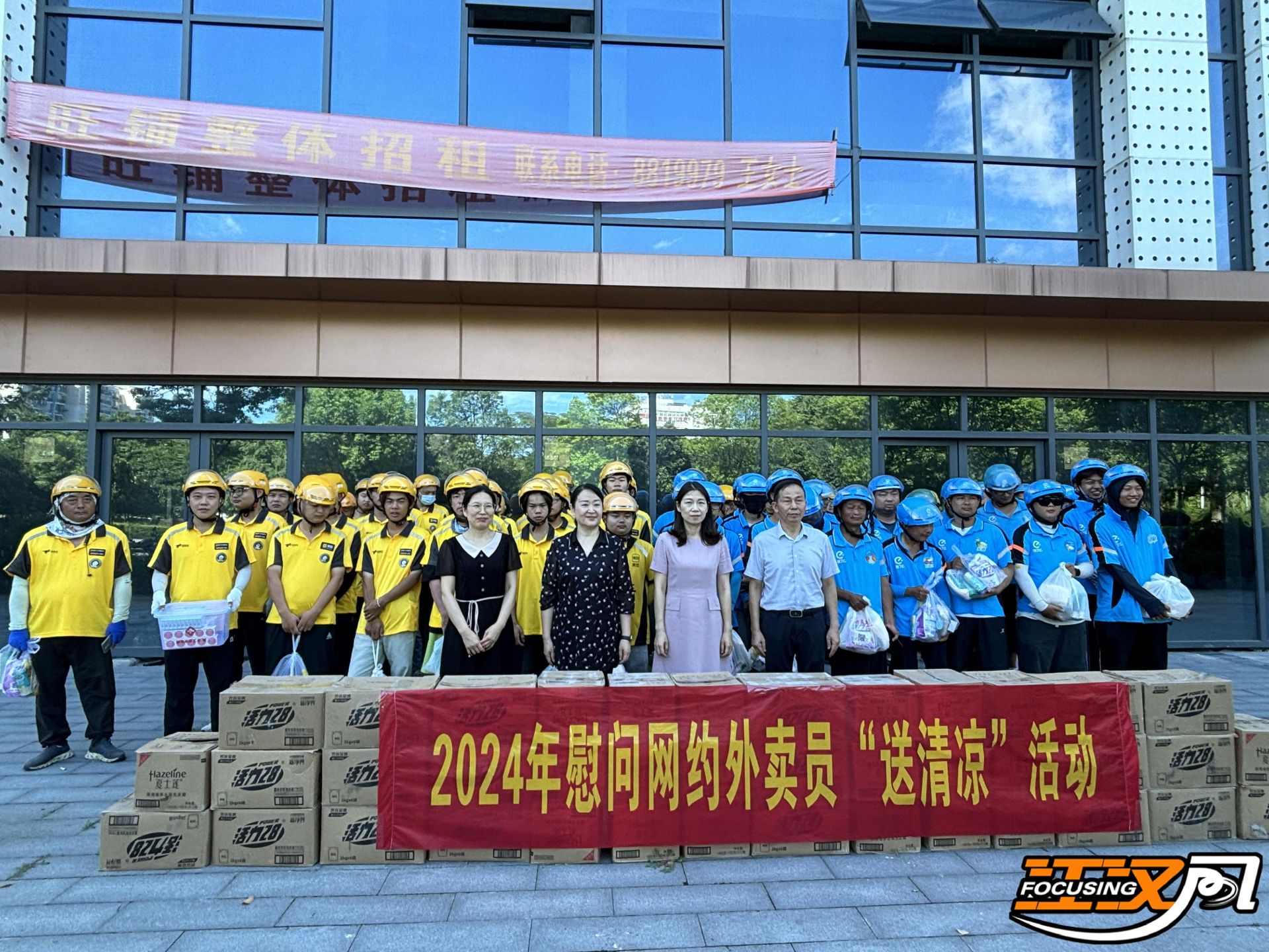 江汉风报道:为进一步加强对新业态新就业群体的服务引领和关心关爱,团结凝聚新业态新就业群体力量,7月30日上午,市委组织部联合市委社工部、市总工会、市市场监督管理局、市交通运输局、市邮政管理局等部门开展为新业态、新就业群体送清凉活动。