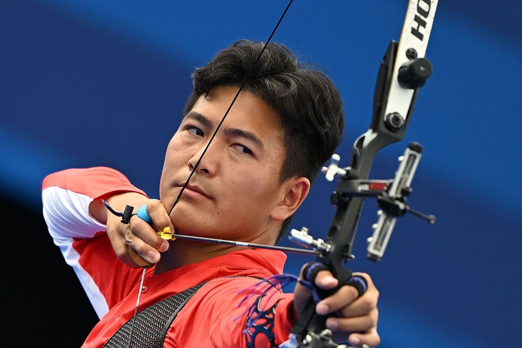 射箭男子个人淘汰赛在巴黎荣军院举行。中国选手王岩晋级16强。