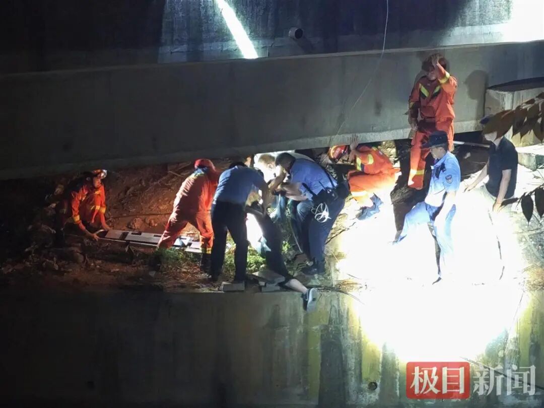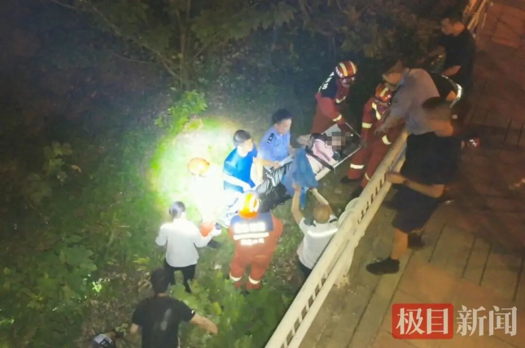 消防员到场时,民警与一名热心群众已将落水女子从水面救至桥下,120医护人员正在现场对落水女子进行急救。由于桥面离桥下有一定的高度,加上环境昏暗,桥下人员难以将落水者转移至桥面。消防员在观察周围地形后,立刻携带救援担架到达桥下,同时展开无人机为救援现场提供照明。在将落水女子抬上救援担架后,众人合力穿越桥洞,从另一侧较平缓处翻越护栏,将落水女子成功转移至路边等候的120救护车上。