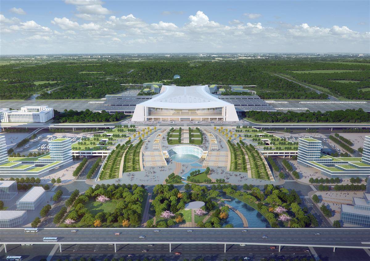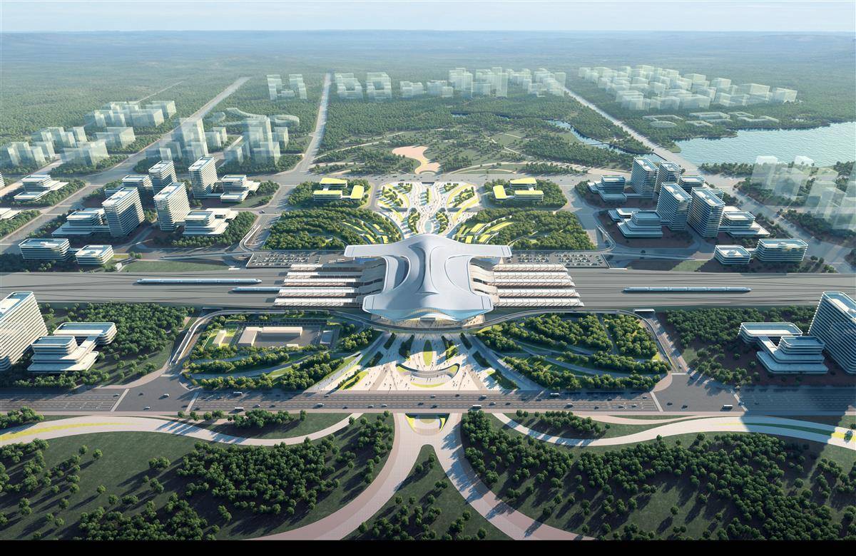 汉川东站位于孝感市汉川市汈东街道,站房建筑面积约2万平方米,站场规模为2台4线。站房以“层波叠浪、水韵汉川”为设计理念,紧扣交通建筑简明大气的风格特征,通过抽象的形式语言,传达“水”文化精髓。