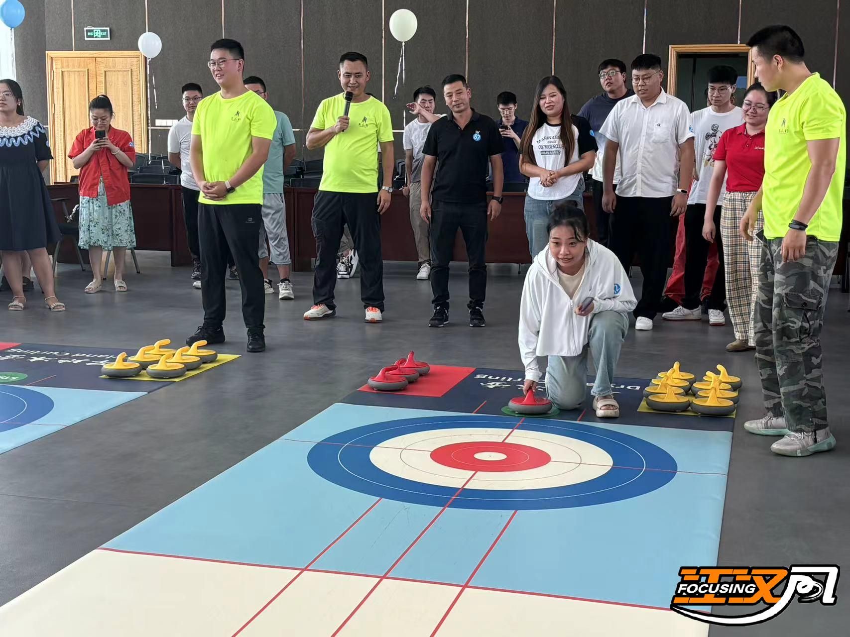 彩色气球、精致甜品台、唯美音乐……活动伊始,嘉宾们有序签到,领取属于爱的号码牌,开启浪漫之旅。为拉近大家距离,活动开展“旱地冰壶”互动游戏,赛前,教练详细讲解了冰壶的基本规则、计分规则、操作细节等,大家认真学习,细心琢磨,做好战略部署,大家聚精会神,压低身体、单膝跪地、稳稳地将冰壶掷出,冰壶“你挤我碰”,展现着它完美的运动曲线,现场爆发出热烈的掌声与喝彩,一次次的精准投壶将比赛不断推入高潮。