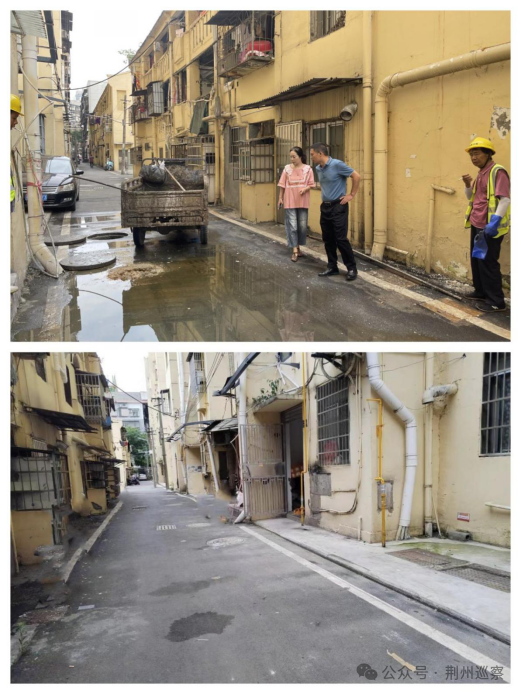 此时正值沙市区委第三巡察组在朝阳街道开展巡察,收到情况反映后,巡察组立即跟随居民的脚步前往宿舍查看具体情况,原来,下水道溢满的主要原因是管道老化,加上近期雨水频繁,导致排水系统堵塞不畅。
