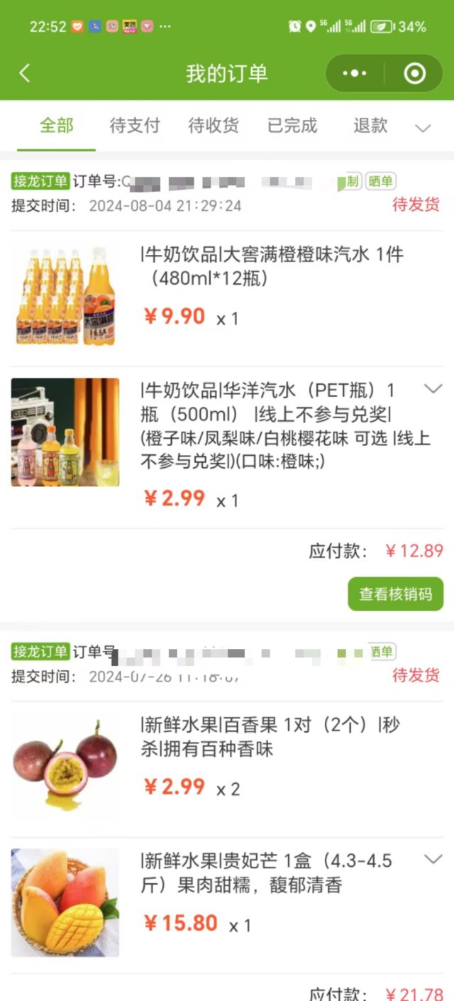 我偶尔会在加一加团购平台买一些东西,8月4日,在平台上看到一款橙味汽水在发起团购,因为平时在餐馆吃饭也会喝这个牌子的汽水,再加上对平台的信任,于是下单买了一件。
