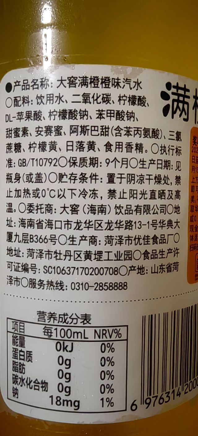 大窖的配料表还是非常实诚的,除了饮用水,全部都是各种添加剂,没有一滴橙子汁,肯定味道不一样啦!