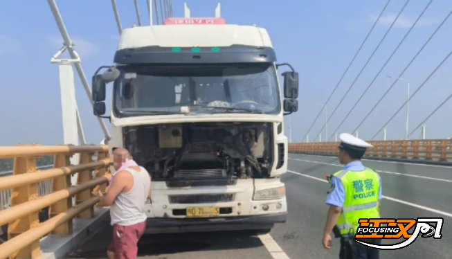 经了解得知,该货车行驶过程中水箱高温,且伴随黑烟,无法继续行驶。民警得知司机车上缺少冷却液,便拿出警车上的冷却液帮货车降温。由于气温高,水箱自然降温时间较长、回温也快,民警便护送该货车缓缓驶下大桥,开往就近收费站。