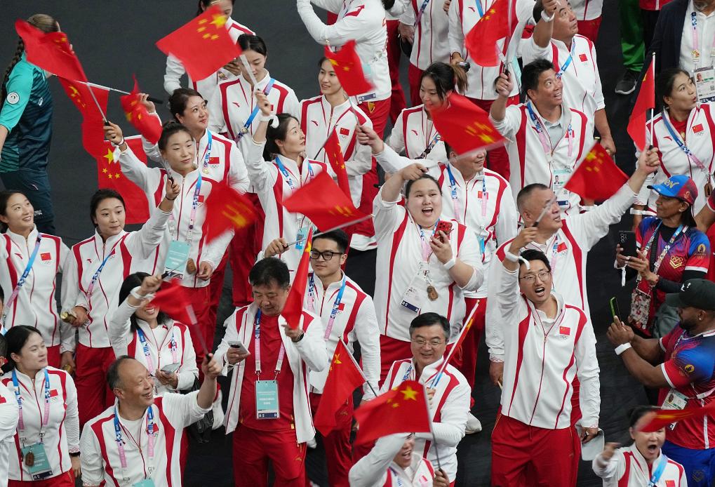 △巴黎奥运会闭幕式上的中国代表团,图/新华社