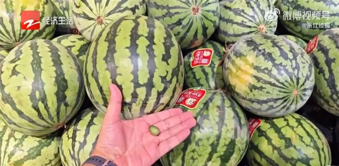 拇指西瓜和正常西瓜对比(图片来源:@浙江经视)