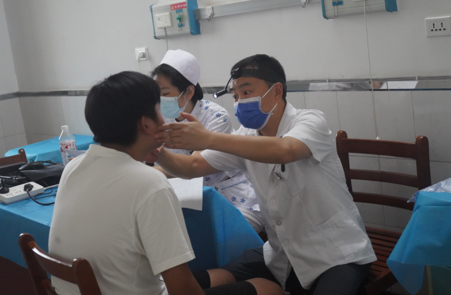 沙市区征兵办工作人员分别到各体检科室详细询问体检工作开展情况,并与正在等待体检的应征青年交谈,勉励他们放松心态,以最好的状态接受祖国挑选。