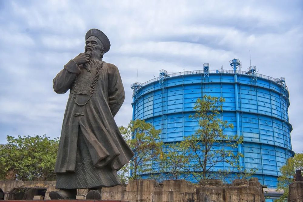 站在大冶特钢汉冶萍广场上