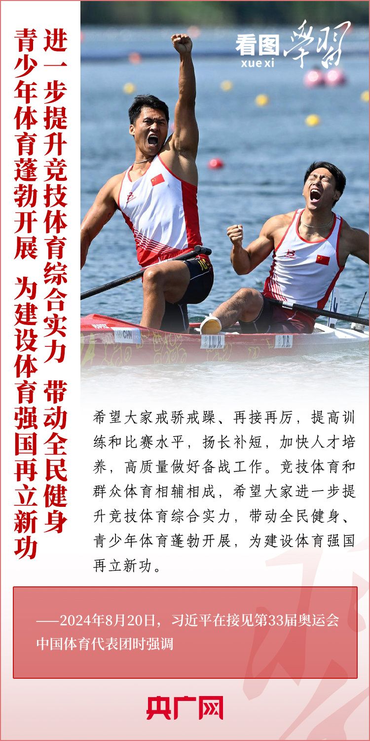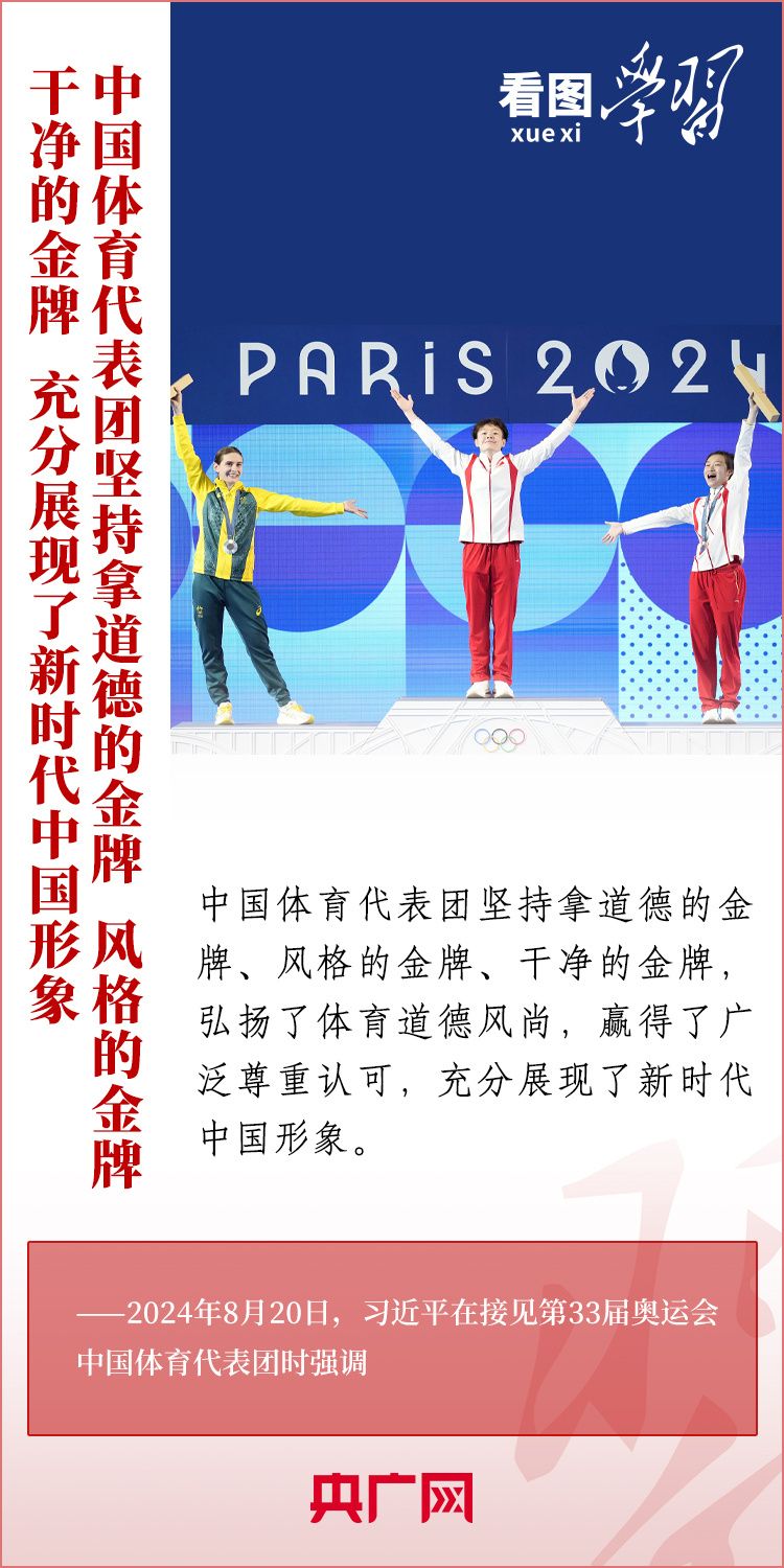 “祖国和人民为你们骄傲,为你们点赞。”8月20日,习近平总书记在人民大会堂接见第33届奥运会中国体育代表团并发表重要讲话。总书记高度肯定中国体育代表团取得的优异成绩,赞扬他们充分彰显了新时代中国力量、生动诠释了新时代中国精神、充分展现了新时代中国形象,勉励大家戒骄戒躁、再接再厉,为建设体育强国再立新功。一起来学习!