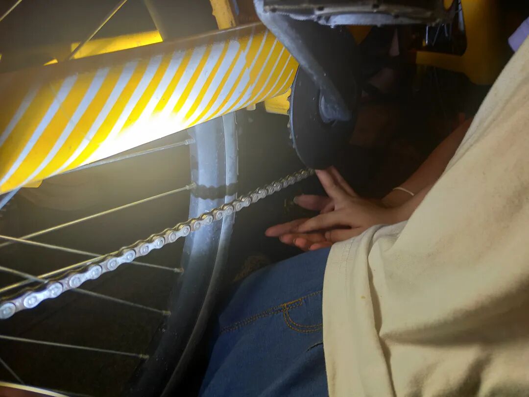 8月19日20时21分,在武汉市江汉区沿江大道上,一名6岁男童的手指被卡进自行车链条与中轴间。