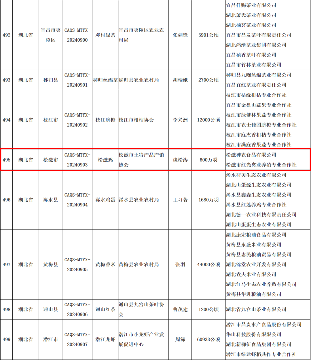 近日农业农村部农产品质量安全中心公布2024年第二批全国名特优新农产品名录全国共有737个产品入选其中松滋鸡上榜