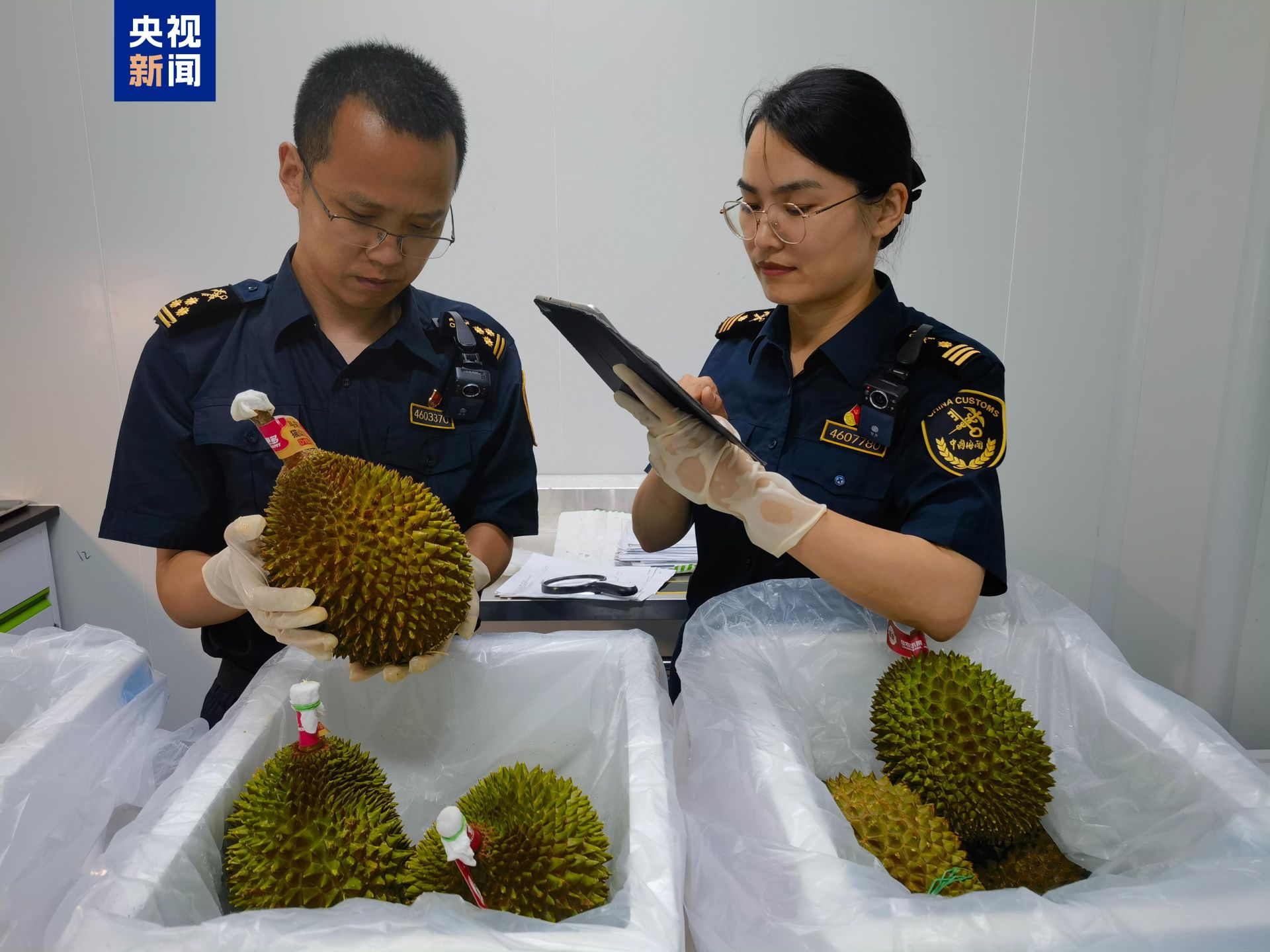 记者从郑州海关了解到,8月24日,一架满载马来西亚鲜食榴莲的全货机顺利抵达郑州新郑国际机场,航班内共1500箱、15吨鲜食榴莲,来自马来西亚9家出口厂商,经过海关查验检疫合格后,快速分拨至全国各地,满足广大消费者对进口水果的需求。这是马来西亚鲜食榴莲获得检疫准入后,首次进入国内市场。