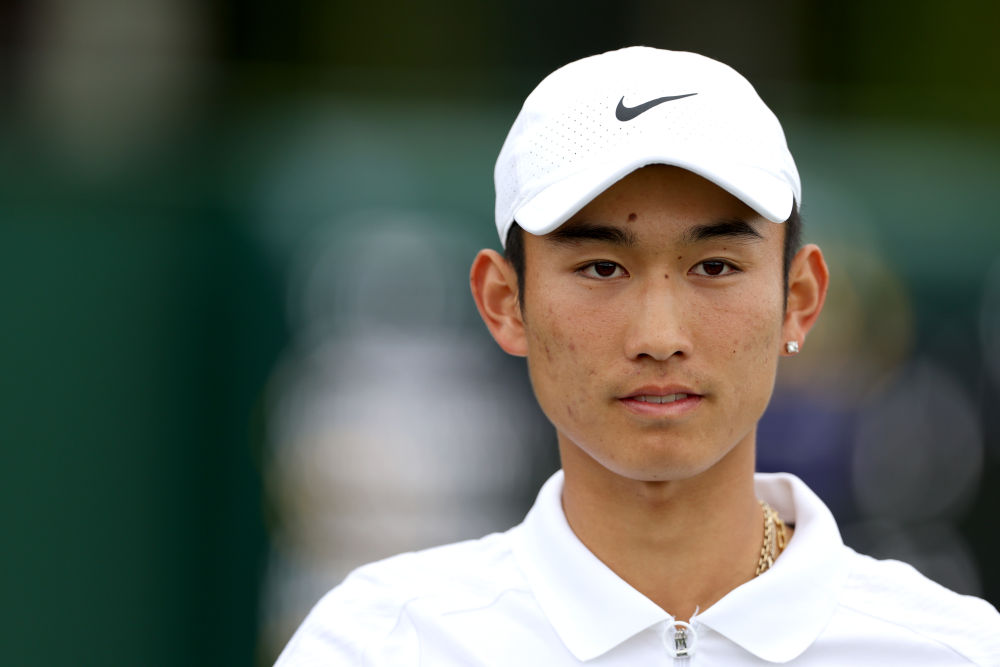 7月1日,商竣程在2024温布尔登网球公开赛男子单打首轮比赛中。新华社记者 李颖 摄
