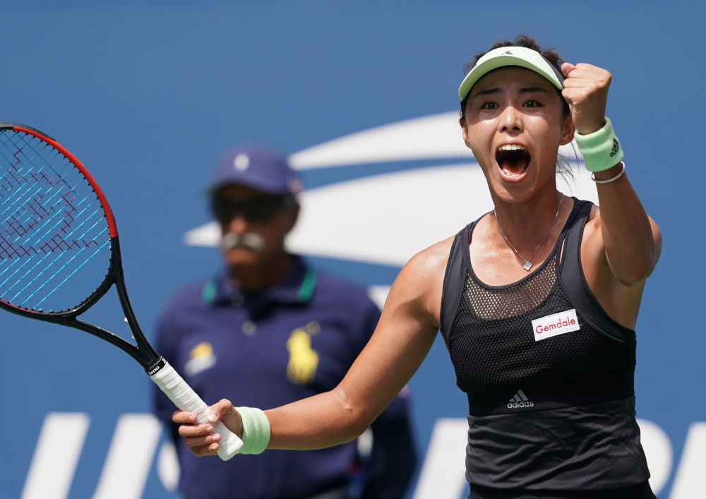 王蔷在2019美国网球公开赛中晋级八强。新华社记者 刘杰 摄
