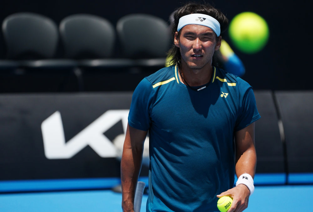 1月10日,布云朝克特在2024澳大利亚网球公开赛男子单打资格赛首轮比赛中。新华社记者 王申 摄