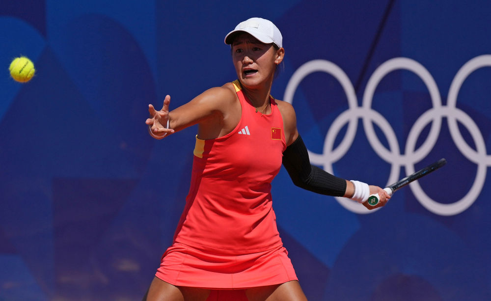 7月28日,王曦雨在巴黎奥运会网球女子单打首轮比赛中。新华社记者 万象 摄